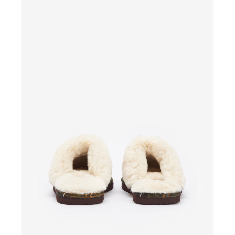 The Barbour Claudia Mule Ladies Slipper is a must-have for those chilly evenings. The mule style slipper features a warm and cosy faux fur lining, accented with the classic Barbour tartan trim. With a Barbour branded sole, these slippers offer both comfort and style.
