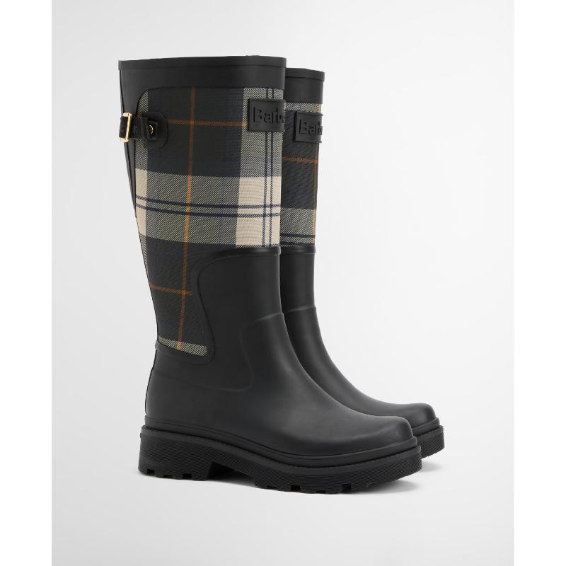 Barbour Dena Ladies Wellington Boot - Black/Ancient Tartan