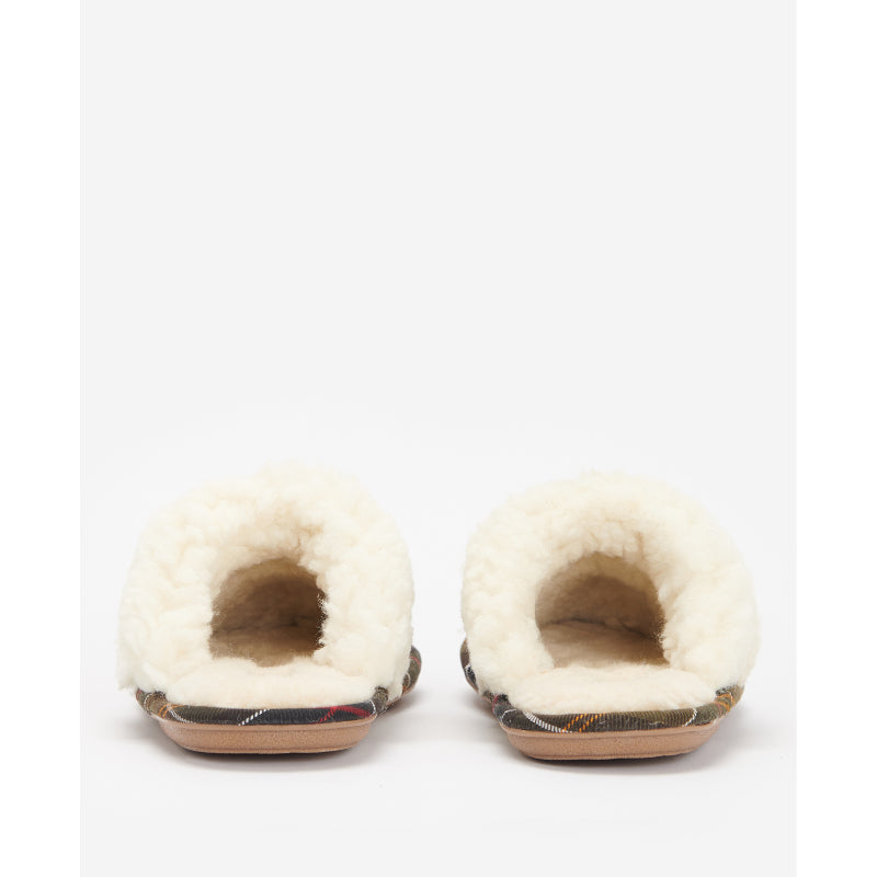 The Barbour Ladies Lydia Mule Slippers are thick fleece lined suede mule slippers trimmed with Barbours Classic Tartan.