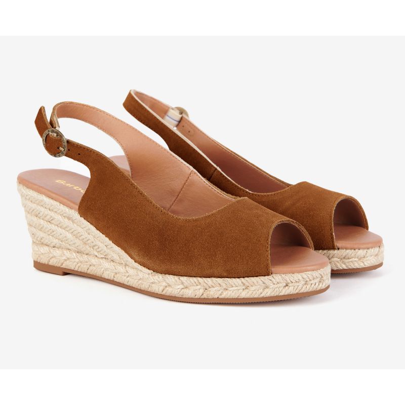 Barbour Nadia Ladies Suede Espadrille Wedge - Cognac