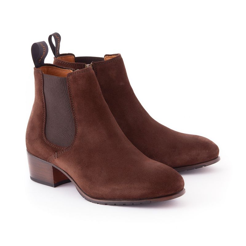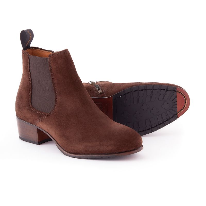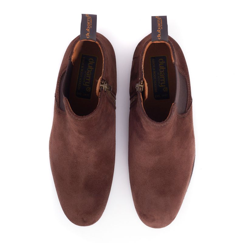 Dubarry's Bray Ladies Chelsea Boots are crafted in genuine suede with a water resistant finish that is both DryFast-DrySoft. The elasticated side gusset offers a sleek fit whilst the interior zip and boot pull provide easy on/off. The hand built sole unit comprises rubber and leather with an elegant leather stacked heel and underfoot cushioning for supreme comfort. Fully leather lined and finished with subtle signature Dubarry branding.