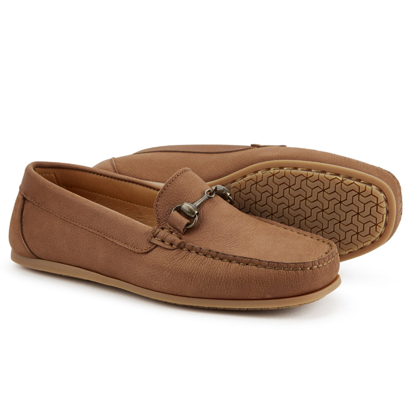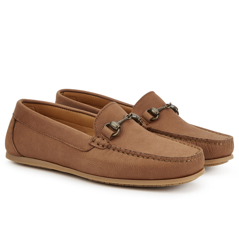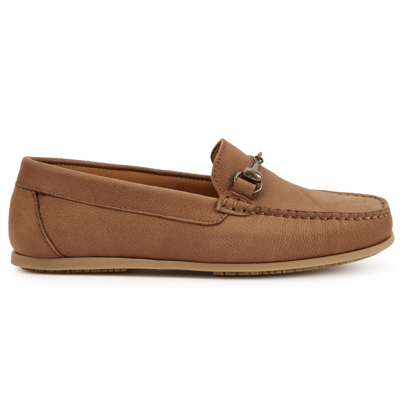 Expertly crafted with the highest quality suede and peached nubuck leathers, the Dubarry Tasmania Ladies Loafer in Caramel offers both style and function. Its Non Slip-NonMarking™ rubber outsole, with a water dispersion channel system, ensures traction and durability in wet and dry conditions. Add a touch of elegance with the country-inspired dull gold metal trim, while enjoying extra comfort and stability with the padded insole and leather lining. Classic Dubarry branding on the upper and outsole adds a finishing touch.