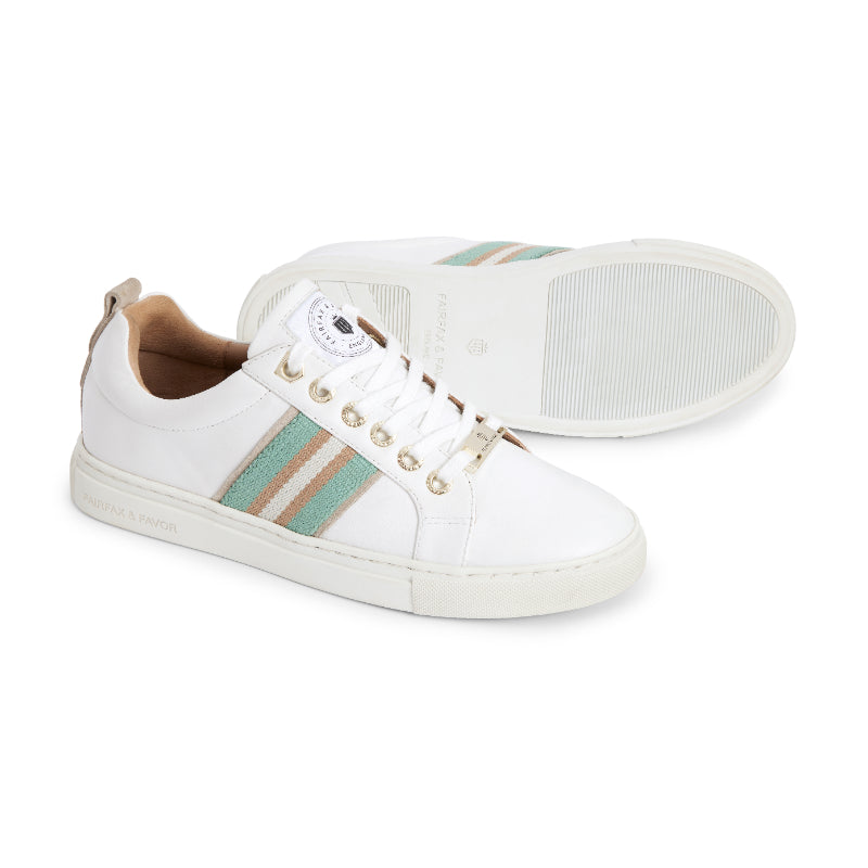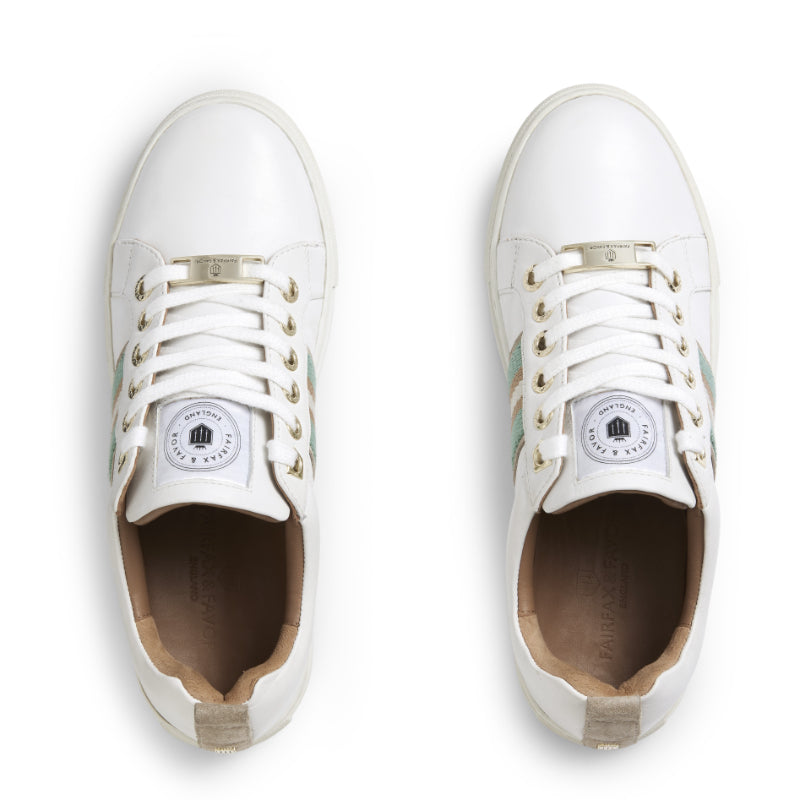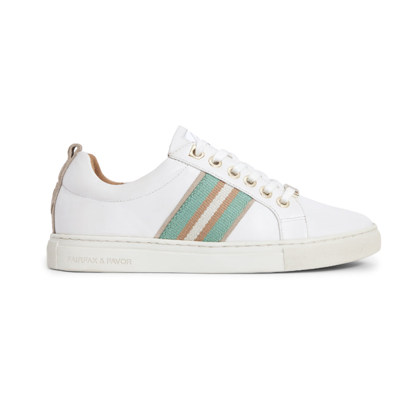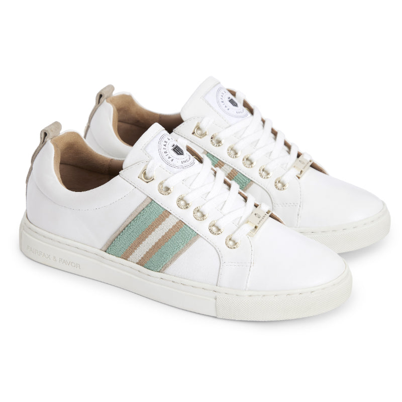 Fairfax & Favor Boston Ladies Leather Trainer - White/Mint/Stone