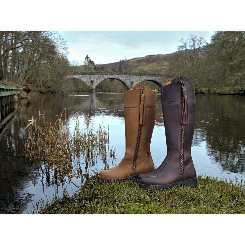 Winner of "New Footwear Product" at the Shooting Industry Awards 2017, the Explorer is handcrafted from supple waxed leather and newly fitted with a fully waterproof and breathable Sympatex membrane and finished with a hard-wearing Vibram outsole. Its iconic scalloped boot pull and leather zip tassel is complemented with soft leather running the length of the zip and inner boot header for maximum comfort. The crafting includes a comfort padded MemoFoam insole and heavy-duty YKK zipper. Stay elegant in the field without compromise.