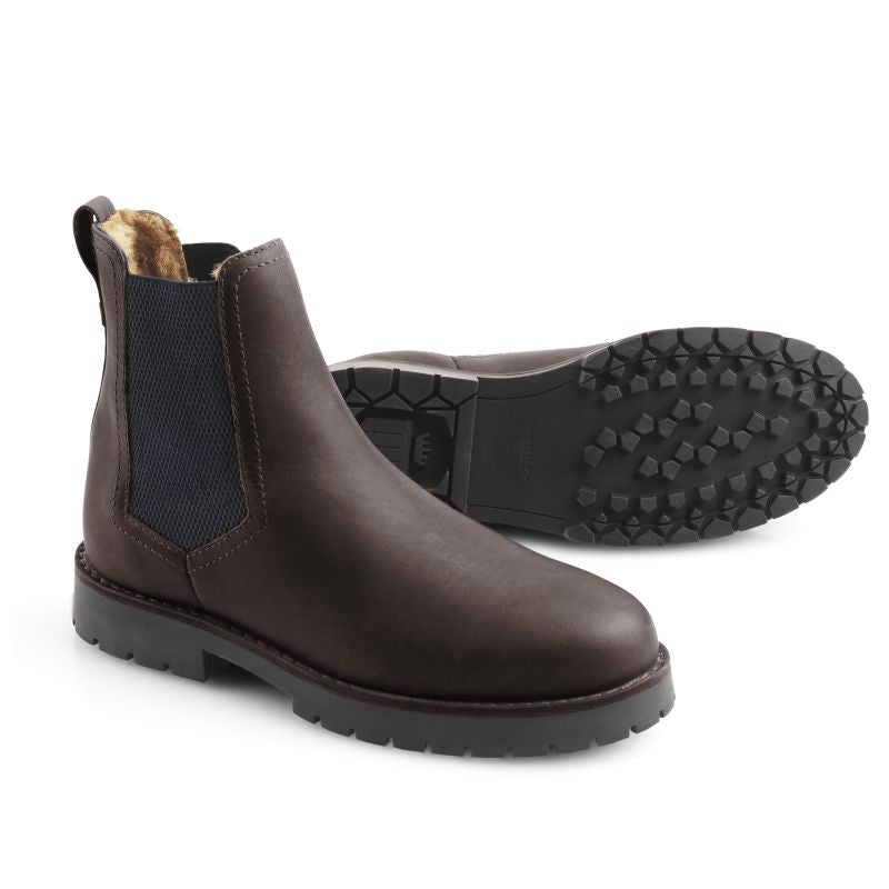 Fairfax & Favor's Boudica boot is a classic Chelsea boot with a hint of country style, crafted from a soft waxed leather with a luxurious shearling lining for warmth. Easily paired with all of your favourite outfits, the Boudica boots are also practical and can be worn in light showers*. Featuring an elasticated side webbing attached to a chunky branded outsole for support and comfort. The perfect everyday boot for ladies who like the country look.