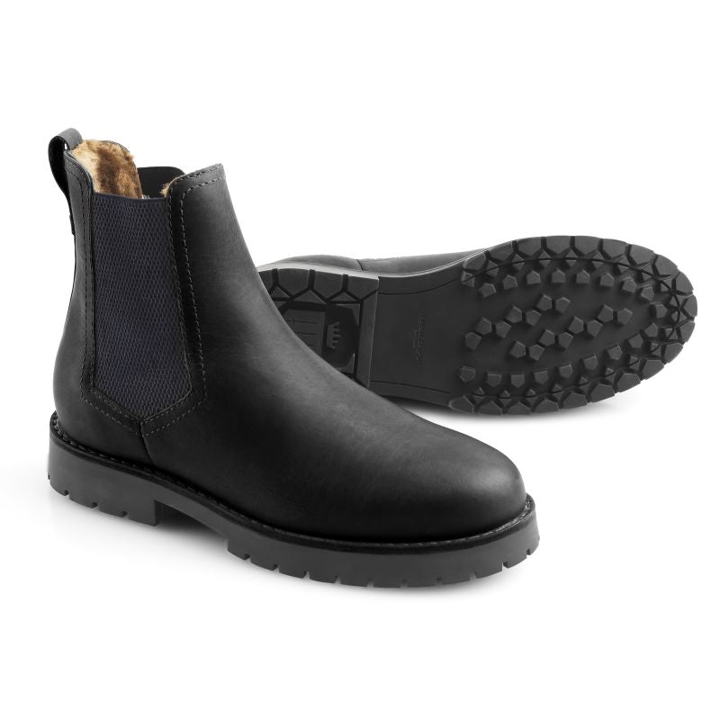 Fairfax & Favor's Boudica boot is a classic Chelsea boot with a hint of country style, crafted from a soft waxed leather with a luxurious shearling lining for warmth. Easily paired with all of your favourite outfits, the Boudica boots are also practical and can be worn in light showers*. Featuring an elasticated side webbing attached to a chunky branded outsole for support and comfort. The perfect everyday boot for ladies who like the country look.