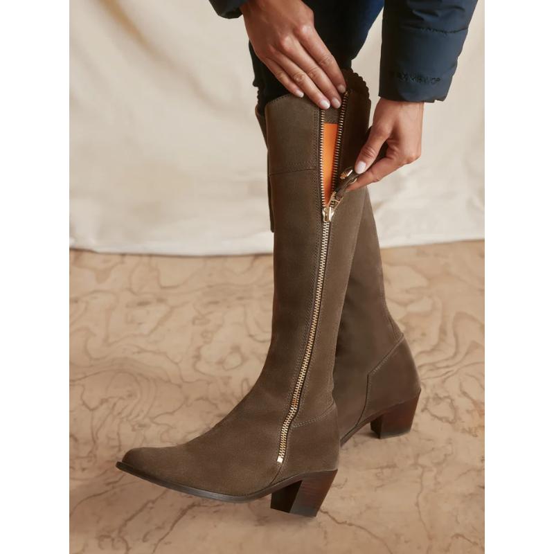 Fairfax & Favor Heeled Regina Ladies Suede Boot - Fog