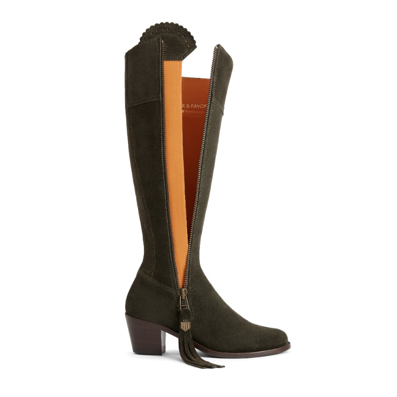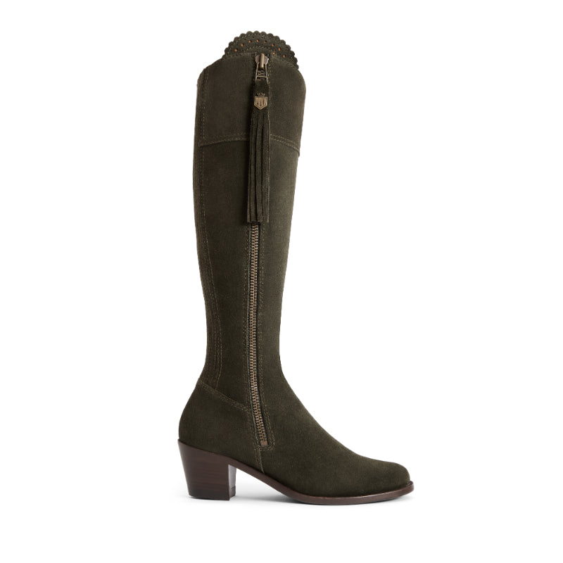 Fairfax & Favor Heeled Regina Ladies Suede Boot - Moss Green
