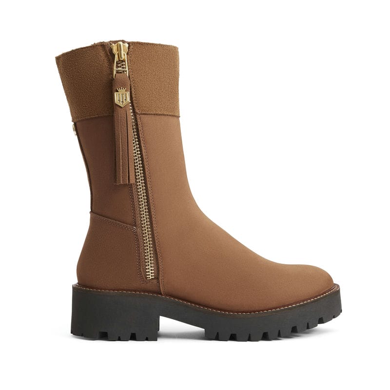 Introducing the Fairfax & Favor Paris Shearling Lined Ladies Boot. Designed with luxe nubuck and suede, these quarter-length boots combine an elegant silhouette with faux fur lining for warm feet all year round. Featuring gold hardware and a micro tassel, the Paris Boot is completed with a side zip for easy wear. Perfect for everyday wear, style with jeans and chunky knits for a relaxed winter look.