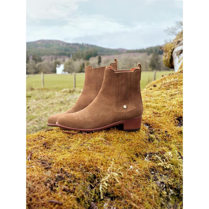 The Fairfax & Favor Fairfax & Favor Rockingham Ladies Chelsea Boot is a smart, western inspired, well-built piece of footwear for busy women on the go. The Chelsea-style boot is set upon a 3cm heel and composite leather and rubber sole, its outer a resplendent suede, its interior fully leather lined. There's attractive hand-stitched detail on the front of the boot and extra support inside thanks to a memory foam comfort insole. Pull tabs for ease of entry.