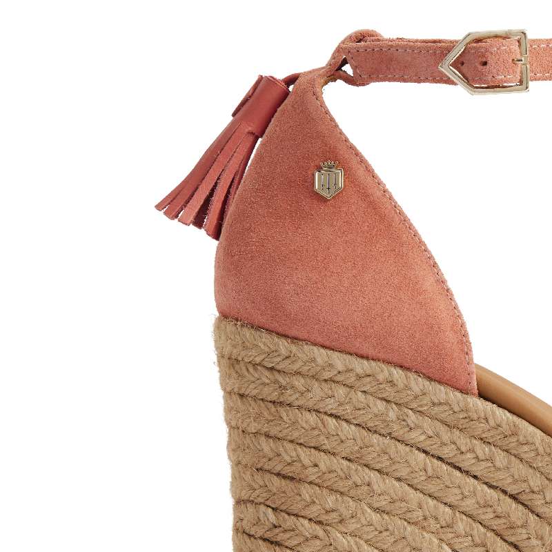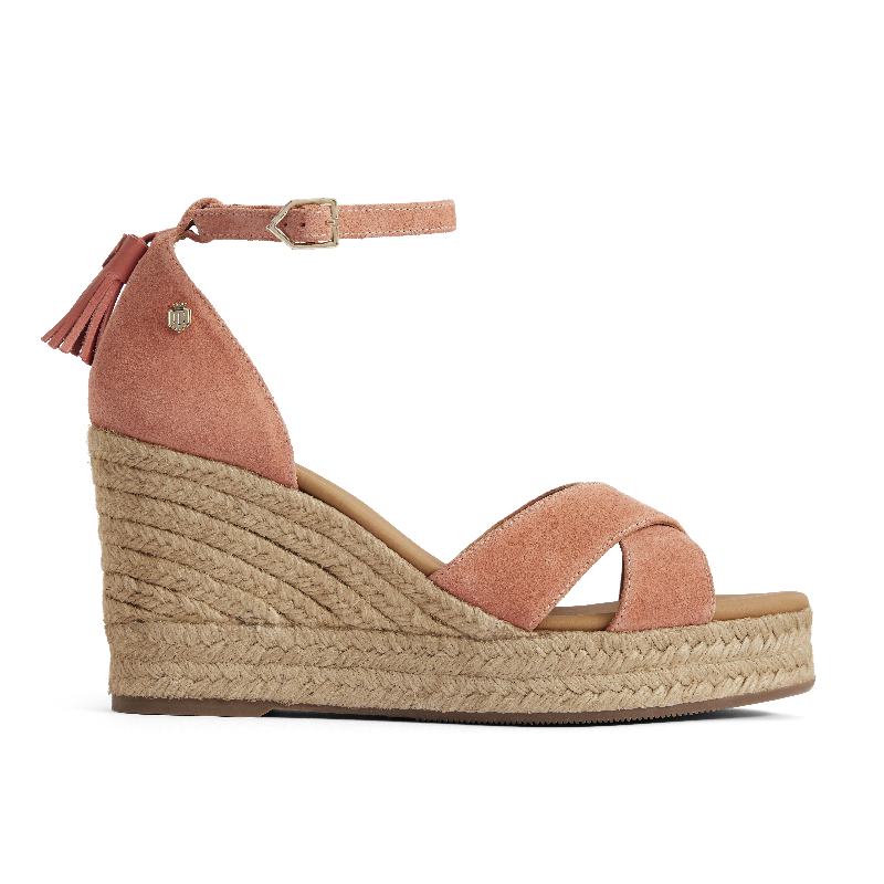 The Valencia Ladies Wedge Sandal from Fairfax & Favor is the definition of summer style! This elegant all-rounder offers comfort and style with bags of delicate detailing. The classic woven jute sole is combined with a super soft suede upper and is finished with a gold chevron buckle, contrast leather tassel and signature gold shield. The 9cm wedge heel and peep-toe front elongate your legs, offering a flattering silhouette, whilst the padded insole ensures that your feet are kept comfortable all day long. Versatile and so easy to wear, if you're going to treat yourself to one pair of shoes this summer make sure it's the Valencia!