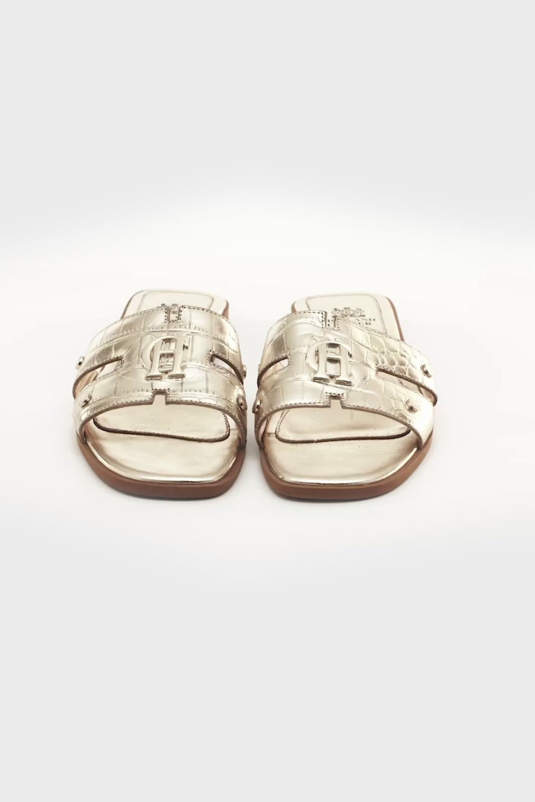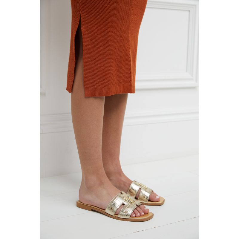 Holland Cooper Monogram Ladies Slides - Gold Croc