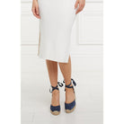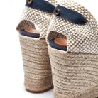 The Seville Ladies Wedge Sandals from Holland Cooper are wonderfully elegant, providing refined summer style and a 4-inch wedge heel that will boost not just your height, but also your confidence. Made in Spain from natural canvas with braided jute heels and a slight platform for comfort. Styled with an almond toe and tie-up ankle fastening, and finished with a touch of gold hardware to the heel.