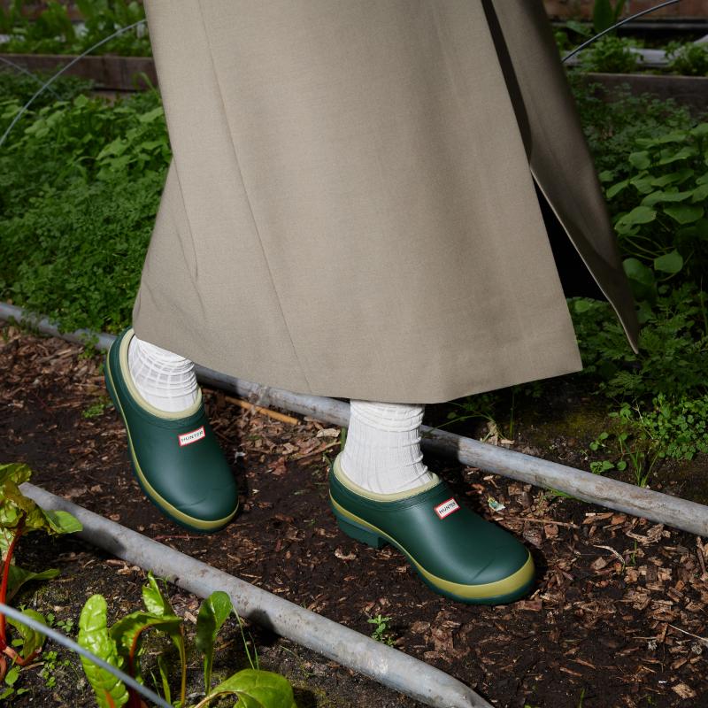 Hunter Ladies Gardener Clogs are super handy slip-on, slip-off natural rubber clogs, easy to wear around the house and garden. Fully waterproof with warming neoprene lining and Hunter's signature tread providing superb grip.