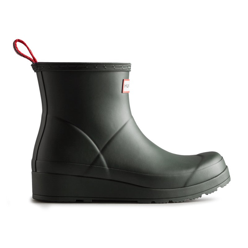 The Hunter Play Short Ladies Chelsea Wellington Boot combines style and function. Crafted from 100% natural rubber and featuring a 100% sustainable lining, this boot is fully waterproof and its streamlined design of the classic Original Boot makes it one of Hunter's fastest best selling silhouette. The pull tab allows for easy foot entry, making it a practical and comfortable choice for any adventure. Handcrafted with a flatter platform sole design for comfort and added style, this boot is a popular choice for those seeking a playful yet practical boot.