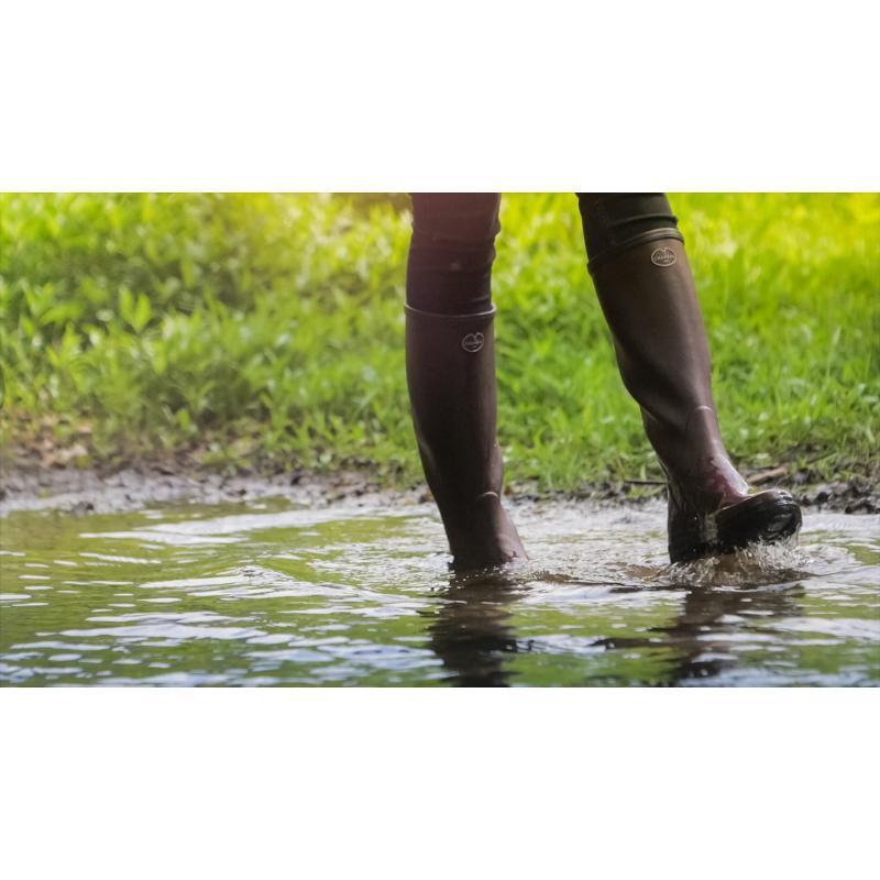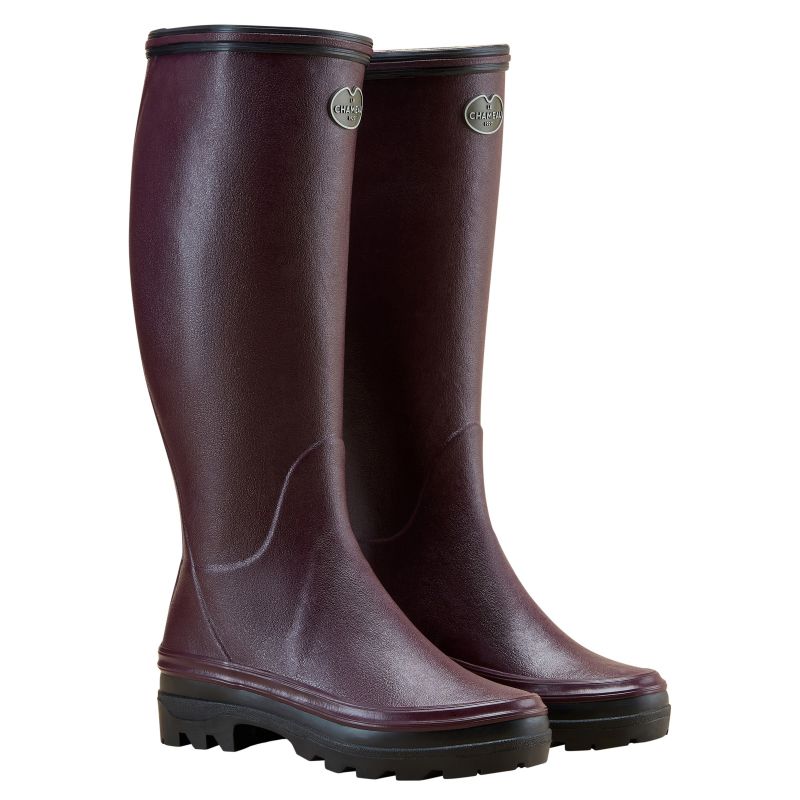 The Le Chameau Giverny Jersey Lined Ladies Boot is a classic for the active country lady. Designed specifically in a ladies fit to offer comfort and style for everyday wear over any terrain. Crafted from 100% natural Chamolux rubber which is waterproof, strong and supple, offering durability whilst remaining lightweight and easy to move in. The signature Chameau jersey lining is breathable and makes these boots especially good when worn during the warmer months. Complete with a dual-density cross outsole that helps to reduce fatigue and ensures your feet are supported and cushioned over even the roughest ground. As stylish as ever, these boots are finished with Le Chameau branding and a contrasting trim.