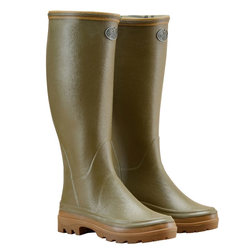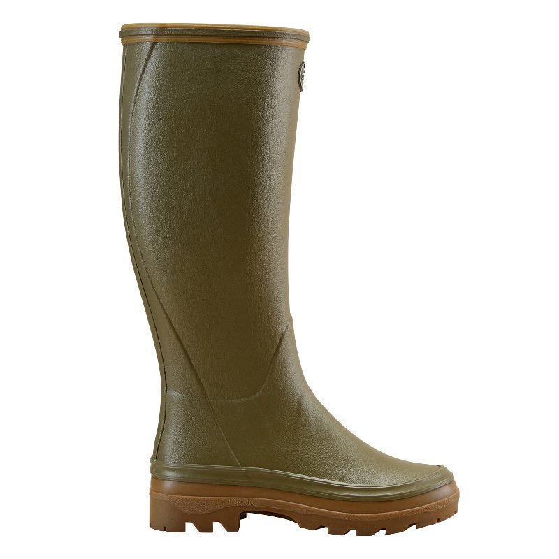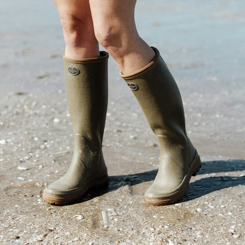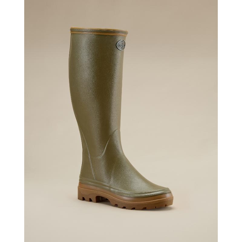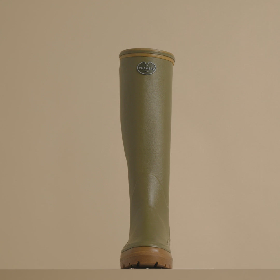 The Le Chameau Giverny Jersey Lined Ladies Boot is a classic for the active country lady. Designed specifically in a ladies fit to offer comfort and style for everyday wear over any terrain. Crafted from 100% natural Chamolux rubber which is waterproof, strong and supple, offering durability whilst remaining lightweight and easy to move in. The signature Chameau jersey lining is breathable and makes these boots especially good when worn during the warmer months. Complete with a dual-density cross outsole that helps to reduce fatigue and ensures your feet are supported and cushioned over even the roughest ground. As stylish as ever, these boots are finished with Le Chameau branding and a contrasting trim.