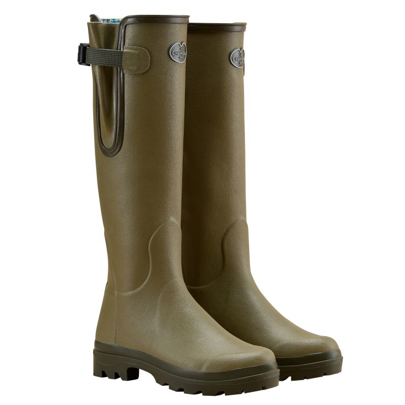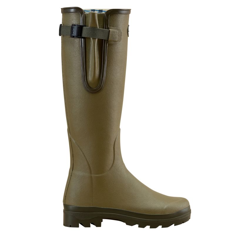 The Le Chameau Ladies Vierzon Jersey Lined Wellington Boots are handcrafted from renowned chamolux rubber, recognised for it's quality, durability and suppleness. This iconic design, first released in 1965, creates a fantastic everyday boot, supremely comfortable and 100% waterproof. The shock-absorbing dual-density outsole provides grip and stability even over rough terrain and the supportive footbed works to reduce fatigue and keep your feet feeling light and comfortable all day long. Complete with a polycotton tartan jersey lining which is fast drying and breathable, whilst the adjustable gusset with snap fastening buckle ensures the perfect fit.