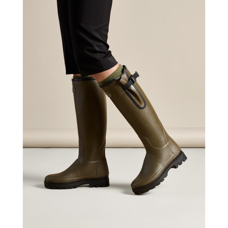 Le Chameau Ladies Vierzonord Neoprene Lined Boots - Chameau Green / Blue Liner