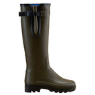 Best selling wellington; tried, tested and hugely popular! Made to an incredibly high standard, this natural rubber boot has an adjustable side gusset with strap and buckle to achieve a comfortable fit along with a shank reinforcement for better arch support. With a fully lined with a 3mm neoprene providing fantastic thermal insulating properties and a dual density all terrain grip sole, this is the perfect boot for cold weather.