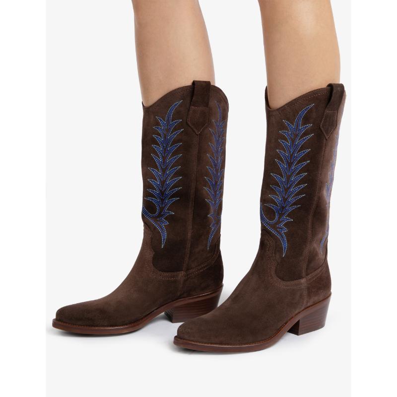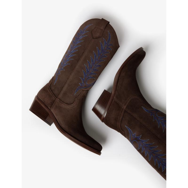 Penelope Chilvers Goldie Embroidered Suede Ladies Cowboy Boot - Bitter Chocolate