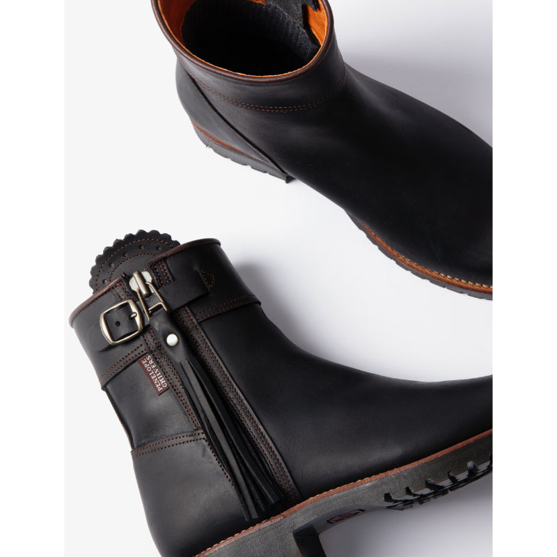 The Penelope Chilvers Inclement Cropped Tassel Ladies Leather Boots are designed with adventure in mind. Crafted from the highest quality sustainably sourced Spanish leather and cut in a practical and versatile ankle height. The elegant lines and attention to detail ensure that these boots are still as feminine and stylish as the classic Penelope Chilvers Long Boots, with scallop detailing at the zip panel and a chic leather tassel. The full rubber Goodyear welted outsole offers comfort and support over even rough ground and the oiled leather upper is tough and resilient, ideal for years of wear. Functional yet fashionable, these boots are a real investment piece that are perfectly suited to a range of country outings.