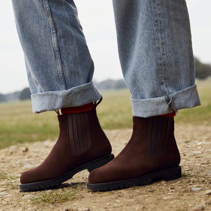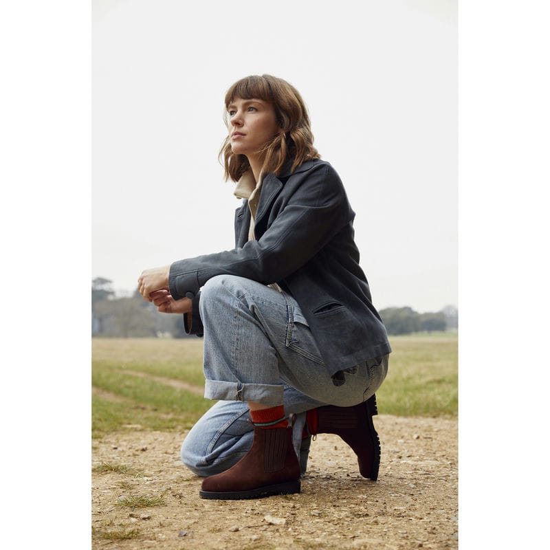 The Penelope Chilvers Oscar Inclement Ladies Weatherproof Boot perfectly blends style with practicality, meaning you can look your best wherever your countryside adventures take you. Inspired by the classic Chelsea boot shape and crafted from oiled suede with a sustainably sourced leather trim. The Texalive membrane offers water resistance, warmth and breathability, wicking away moisture and keeping your feet fresh, dry and comfortable. Featuring a Goodyear welted sole, offering ventilation and superb durability, with rubber tread and an internal cork layer that moulds to your foot shape for comfort and support. These boots are not only beautiful, cut in a sleek and stylish fit, but are also highly technical and ideal for the active country lady.