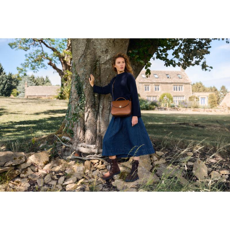 Introducing the ultimate luxury accessory - the Fairfax & Favor Blenheim Ladies Leather cross body bag or handbag. Crafted from the finest Italian leather with a subtle chevron detail, this bag exudes elegance. The soft, natural leather develops a beautiful patina over time, while the polished gold hardware and detachable crossbody strap add practicality and style. A standout piece from the exclusive Blenheim collection.