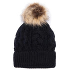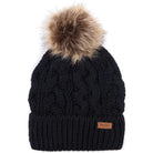 The Barbour Penshaw Cable Ladies PomPom Hat is a knitted beanie with faux fur pom pom and turn up hem with leather Barbour badge.