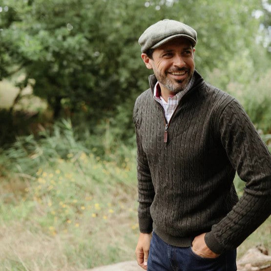 Hicks & Brown Felsham Bakerboy Tweed Cap - Green