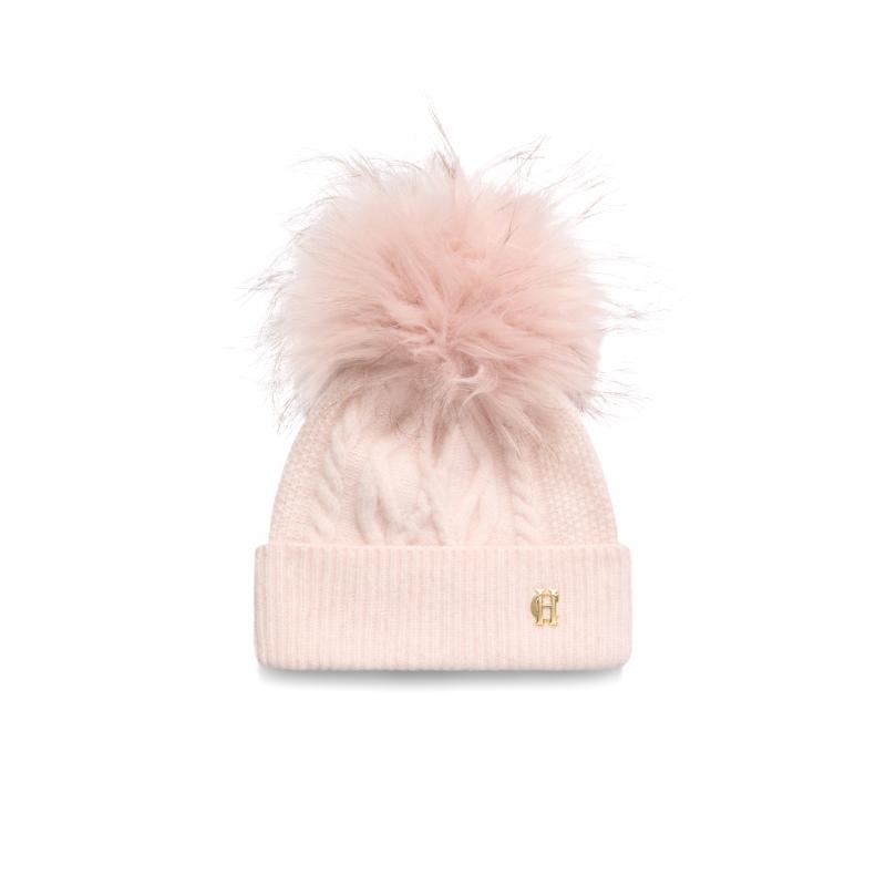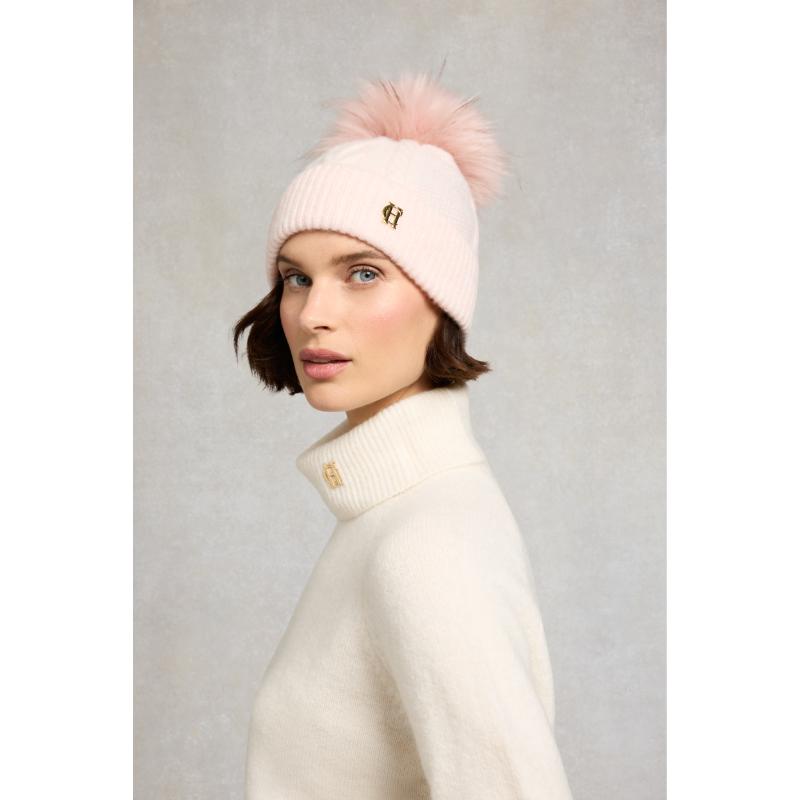 Holland Cooper Sloane Cable Ladies Bobble Hat - Soft Pink