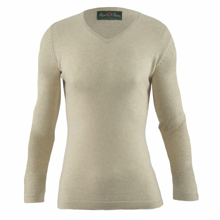 The Alan Paine Ladies Geelong V Neck Jumper is classically styled and highly useful. Layer under your tweeds for days in the field or add a chic gilet for coffee dates in town. Crafted from geelong lambswool, a beautifully soft fibre that is slightly lighter in weight that classic lambswool but equally as warm and cosy. Cut in a flattering v neck with subtle linked detailing at the sleeves.