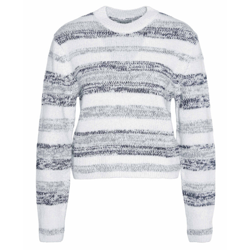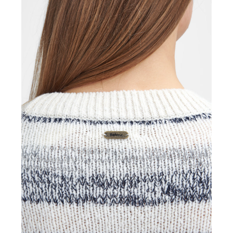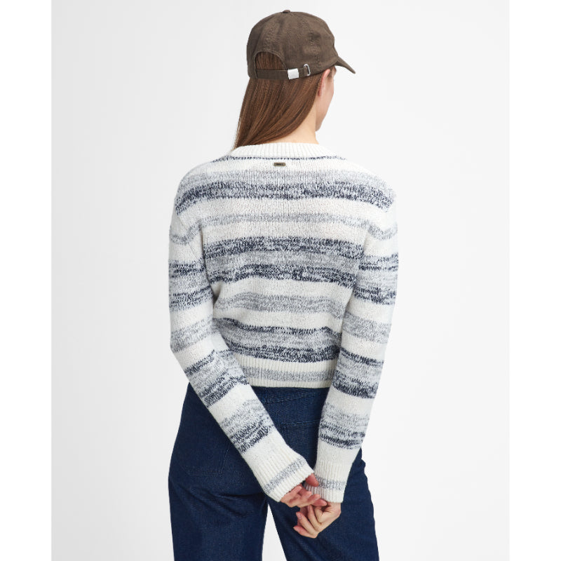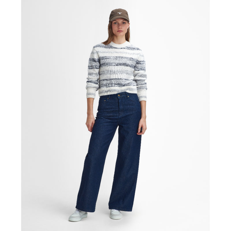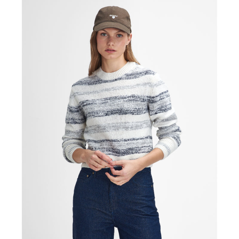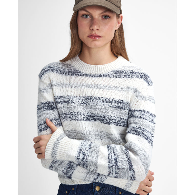 Expertly crafted and designed, the Barbour Anya Knitted Ladies Jumper is a must-have addition to your wardrobe. Featuring a stylish mouline stripe design and set-in sleeves, this cropped sweater is perfect for any occasion. The mid-gauge single bed knit and ribbed trims add a touch of elegance and warmth, making it a versatile and timeless piece.