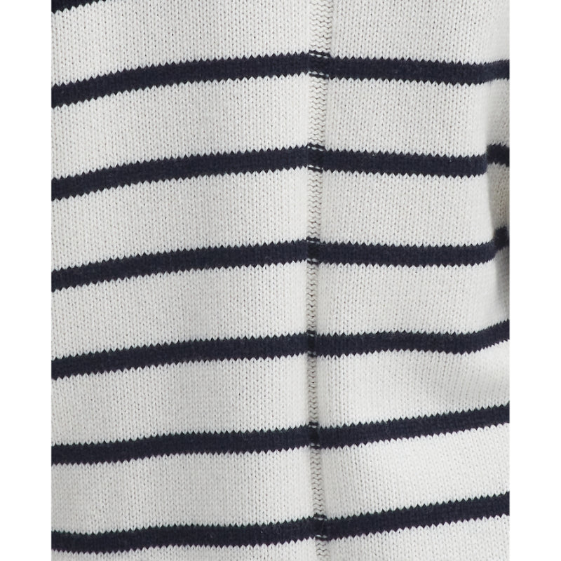 The Barbour Belmore Knitted Ladies Jumper is a mid gauge sweater made from a warm blend of cotton and wool. The Breton stripe design adds a touch of style, while the crew neck and dropped armhole provide a comfortable fit. The deep rib trims with tipping at the hem and cuff add a fashionable touch to this cosy jumper. Enhance your cold weather attire with this versatile and stylish jumper.