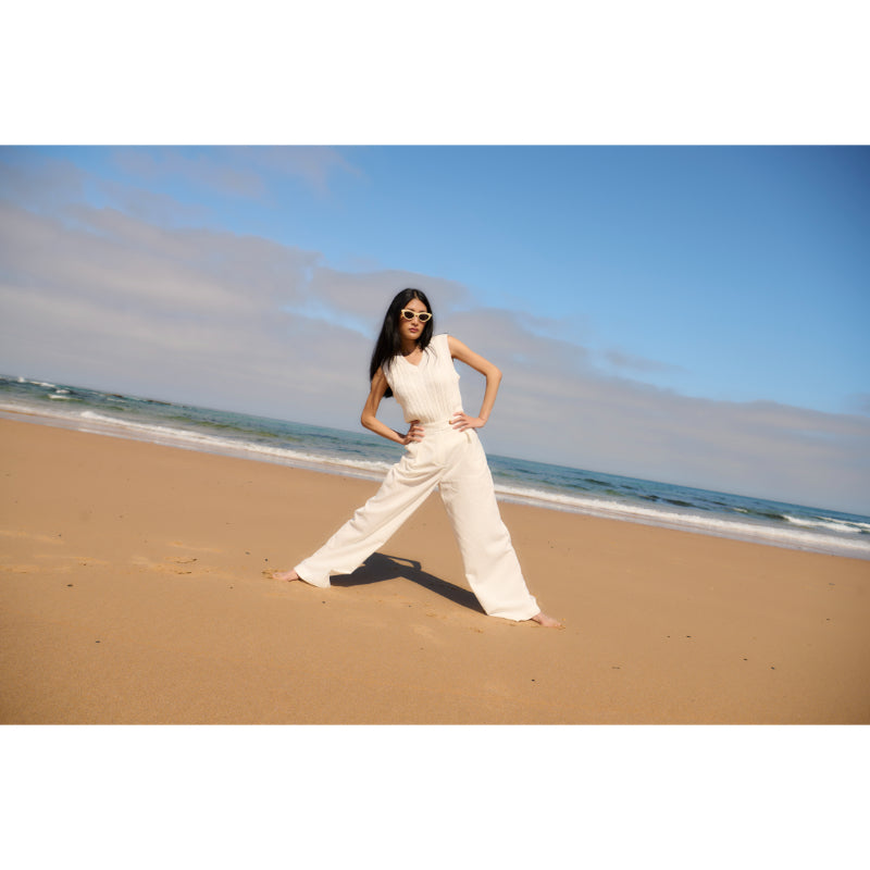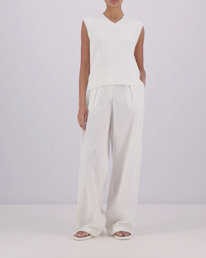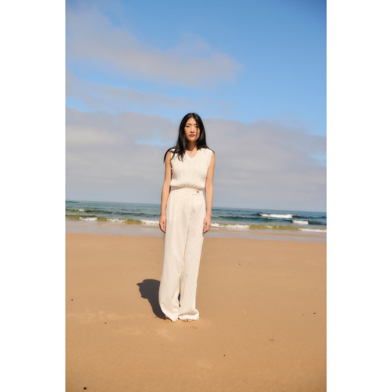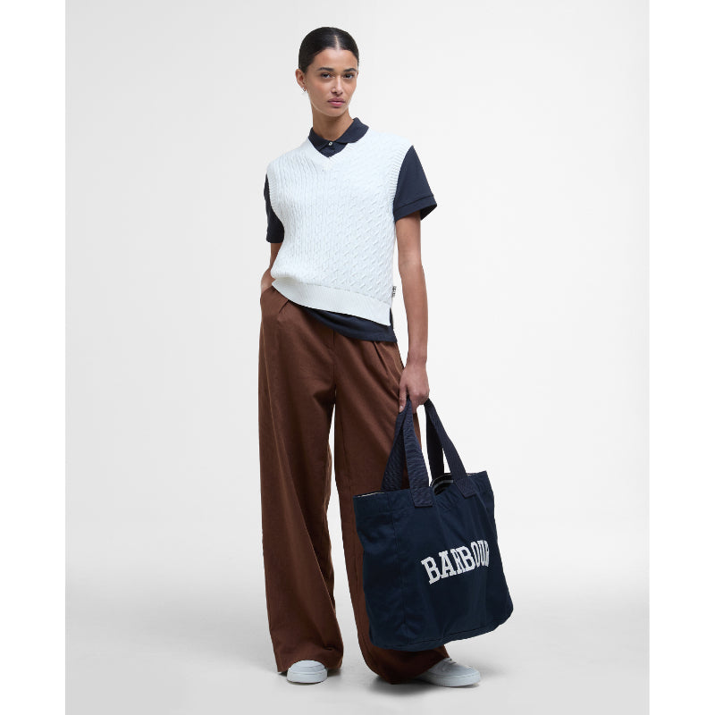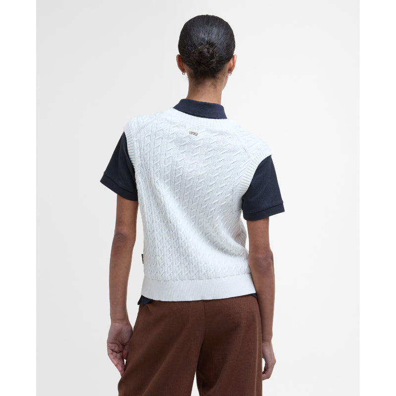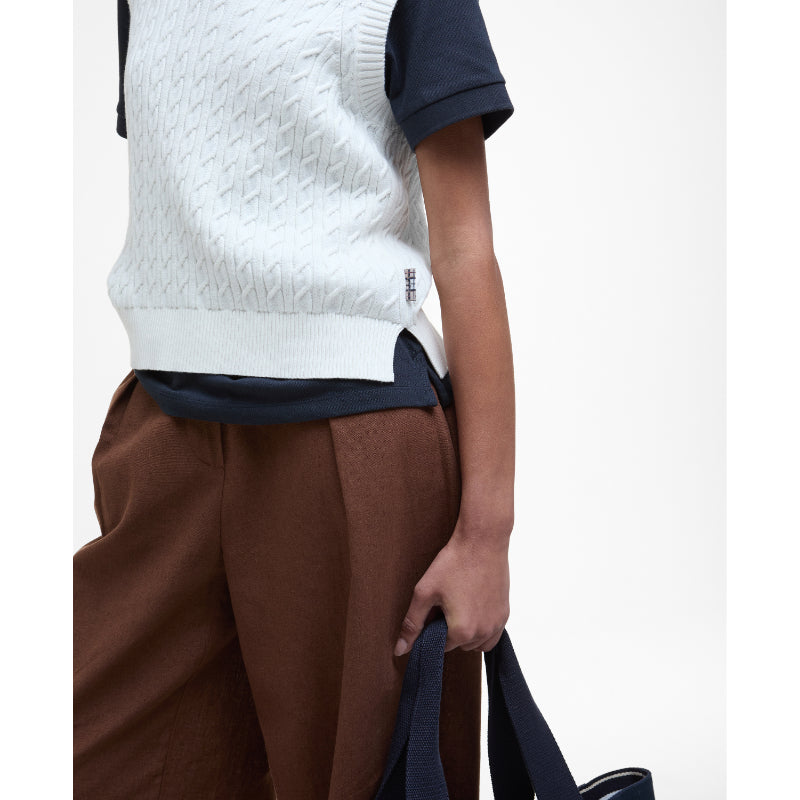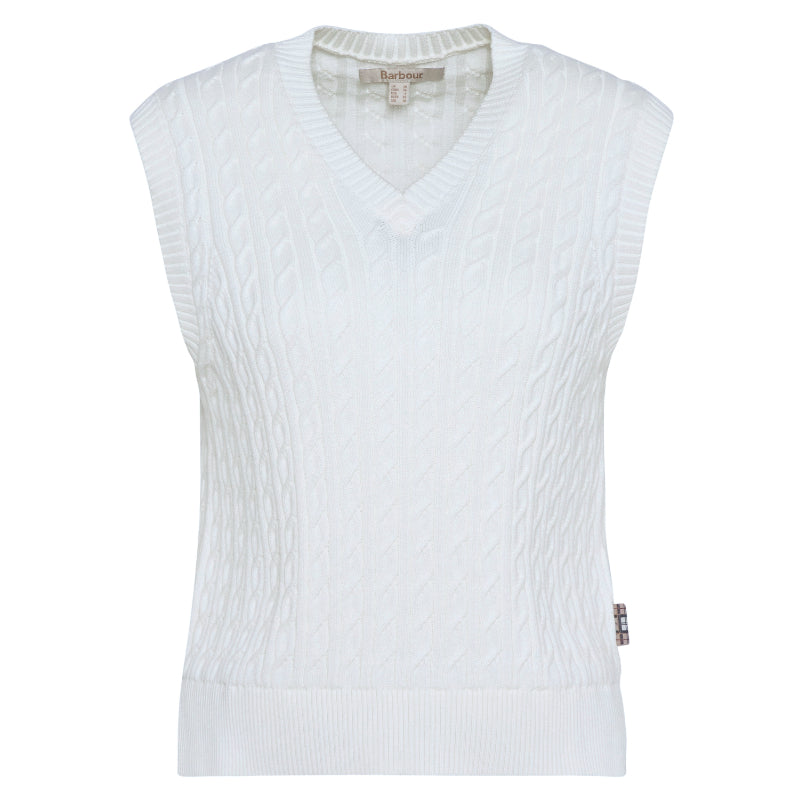 Barbour Hartland Ladies Sleeveless Knitted V Neck Jumper - Cloud