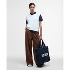 The Barbour Hartland Ladies Sleeveless Knitted V Neck Jumper in offers both style and practicality. Crafted from cable knit fabric with a V-neck design, it features a back shoulder slope and ribbing detail for a flattering fit. The side splits, tartan side flag, and slim metal ID bar add a touch of elegance.