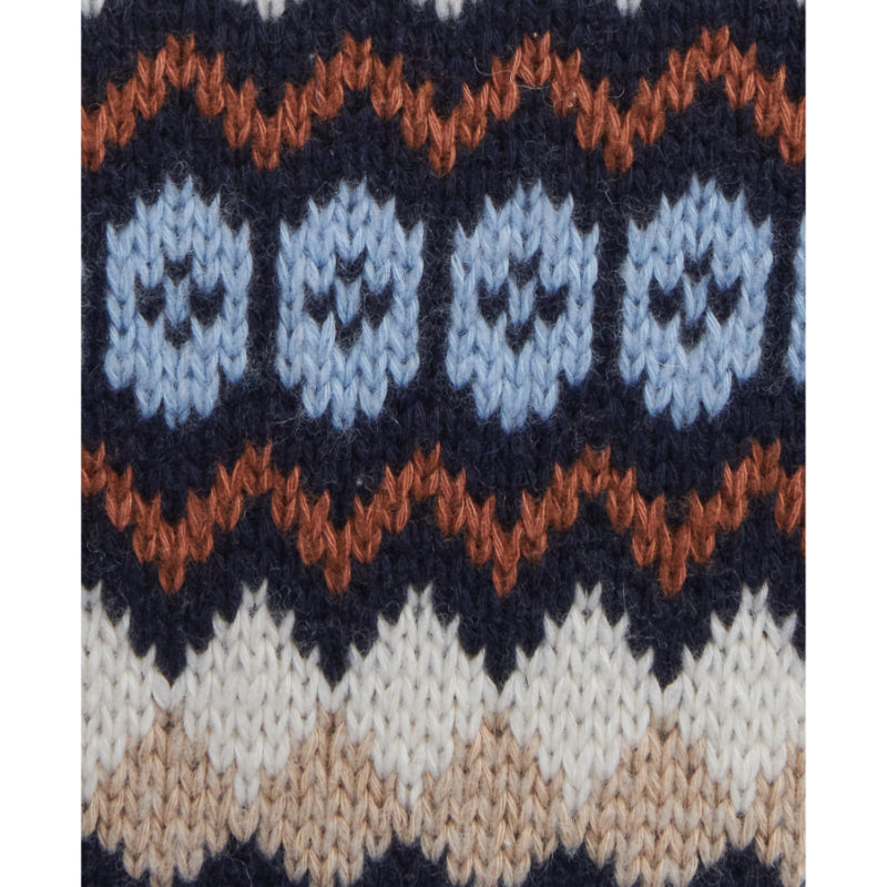 Stay warm and stylish in the Barbour Larisa Knitted Ladies Jumper. Made with a cosy wool and cotton blend, this jumper features a funnel neck and ribbed trims for added comfort. The wide body and slim sleeves create a flattering silhouette, while the Fairisle design adds a touch of fun. Perfect for any winter wardrobe.