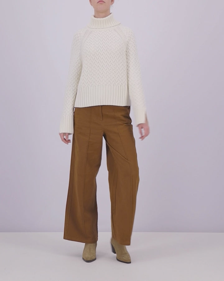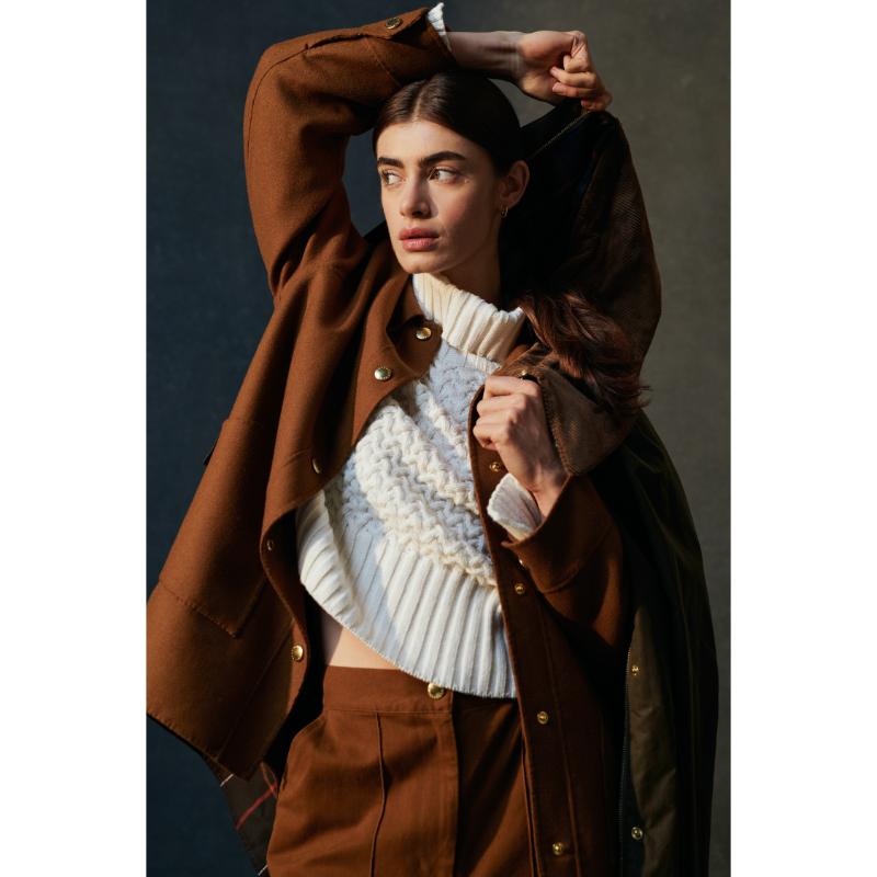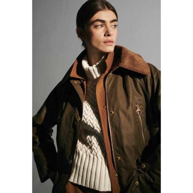 Introducing the ideal winter garment, the Barbour Malton Wool Cashmere Knitted Ladies Jumper. This cropped knitted jumper features an A-line shape for a flattering fit. The heavy gauge jumbo cable knit structure provides warmth and a luxurious texture. With a roll neck, split back, deep raglan armhole, and chunky rib hem and cuffs, this jumper is both stylish and comfortable. Cuff splits add an extra touch of detail.