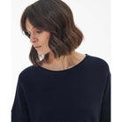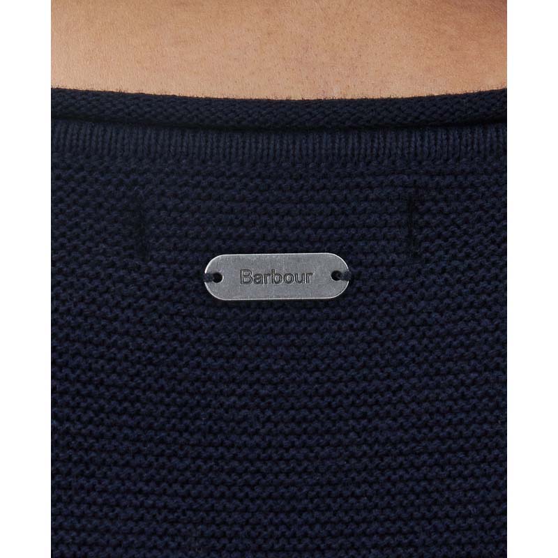 This Barbour Marine Ladies Knitted Jumper adds stylish comfort to any wardrobe. Made of 100% cotton, this easy-knit jumper features an all-over link-links stitch, dropped shoulders, side splits, and a stepped hem for a flattering fit. A slim metal ID bar completes the look at the back neck.