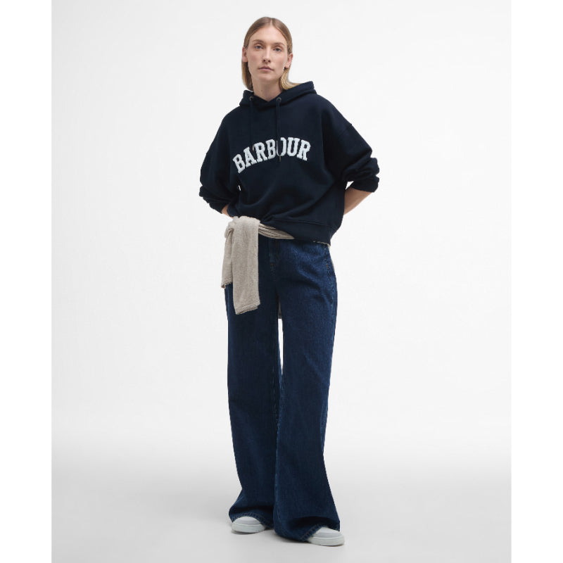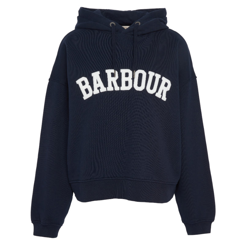 The Barbour Mayfield Hoodie offers a varsity-inspired style, perfect for coastal or rural strolls. As a versatile layering piece, this hoodie displays a Barbour boucle graphic on the chest and is made with cotton for exceptional comfort. Whether paired with jeans or a midi skirt, this sweater adds a classic touch to any outfit.