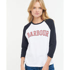 Barbour Northumberland Ladies Long Sleeve T-Shirt - Navy/Pink Punch