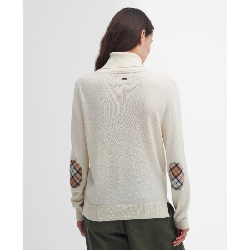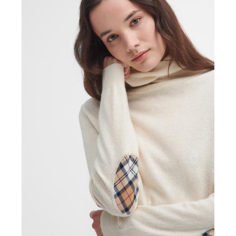 Barbour Pendle Roll Neck Knitted Ladies Jumper - Ecru/Hessian Tartan