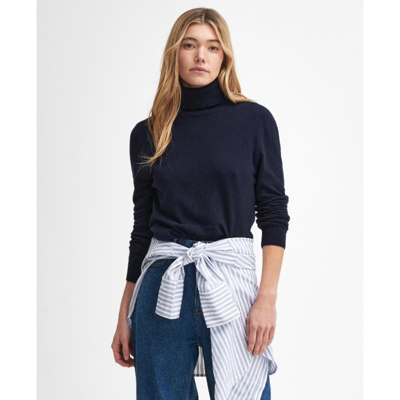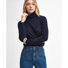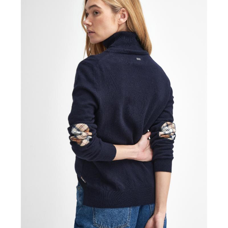 Barbour Pendle Roll Neck Knitted Ladies Jumper - Navy/Hessian Tartan