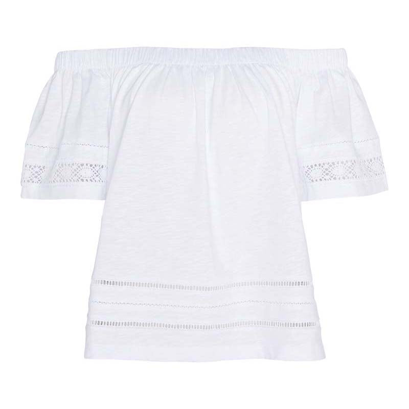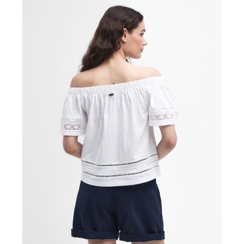 Stay cool this summer with the Barbour Ralee Ladies Top. Made from lightweight cotton, this relaxed fit bardot top features laddered trim details at the cuff and hem. Its wide neck can be worn on the shoulder or off the shoulders for an elegant effortless look. Style it with jeans and sandals for any casual summer or spring occasion.