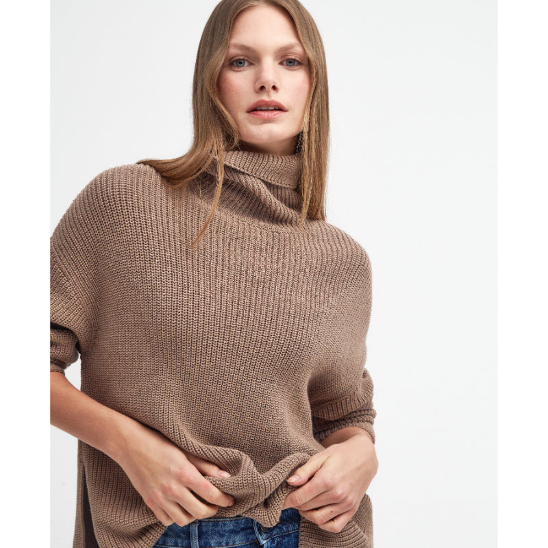 Expertly crafted from a luxurious cotton and wool blend, the Barbour Rib Stitch Knitted Ladies Cape offers both style and warmth. With a roll neck and ribbed knit structure, this cape provides a relaxed and comfortable fit. Perfect for cooler months, this cape style jumper is a must-have addition to any wardrobe.