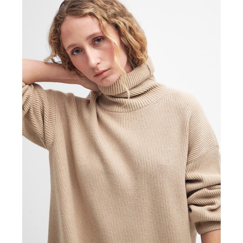 Elevate your winter wardrobe with the Barbour Rib Stitch Knitted Dress. This chunky rib knit dress features an oversized silhouette and dropped shoulders for a cosy and effortlessly stylish look. The open side seams provide lots of room to move and a relaxed fit, while the roll neck keeps you warm. The perfect winter essential for your wardrobe, easy to dress up or down.