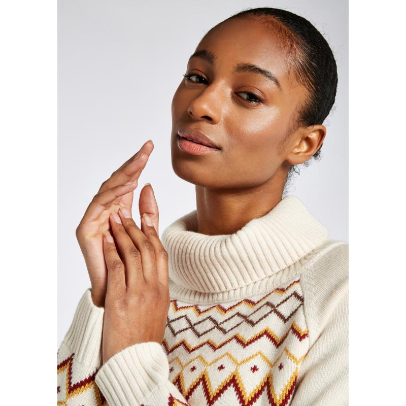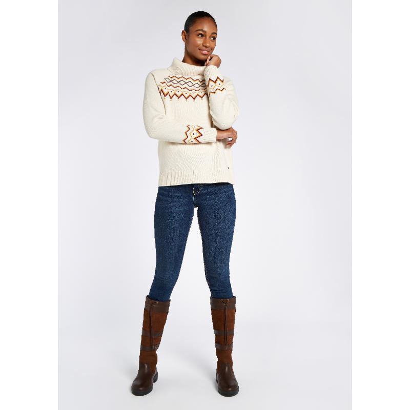 Dubarry Riverstown Ladies Fair Isle Polo Neck Jumper - Chalk