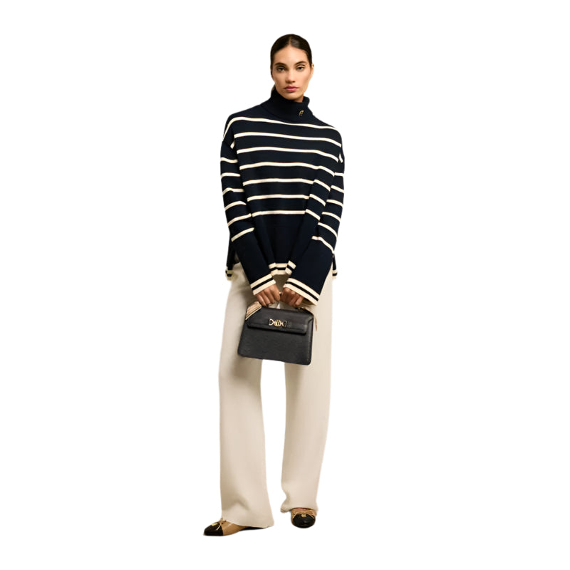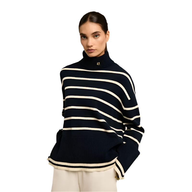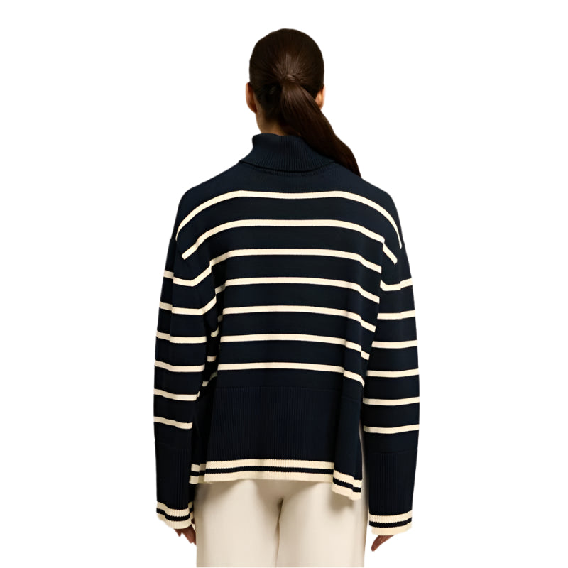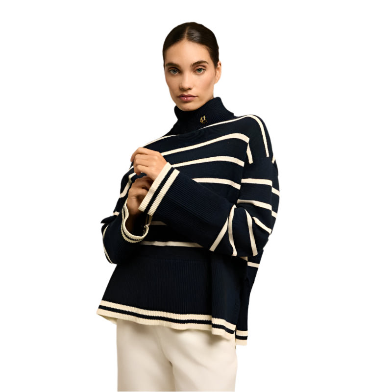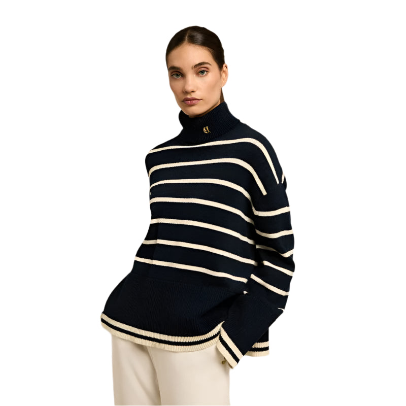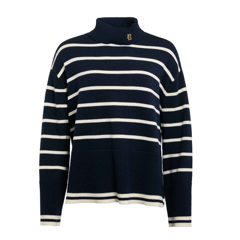 Holland Cooper Antonia Roll Neck Ladies Knit Jumper - Ink Navy Stripe