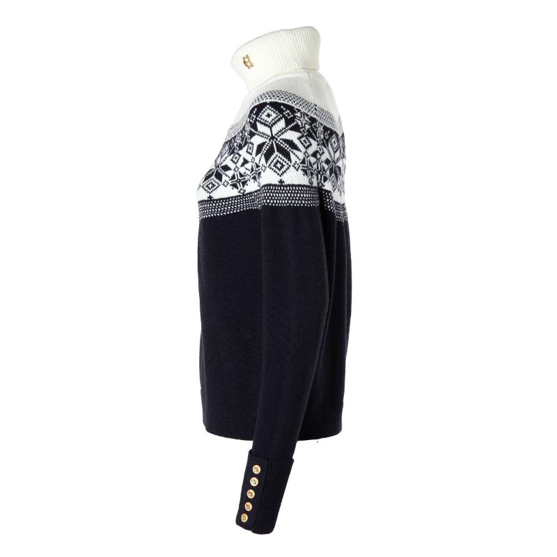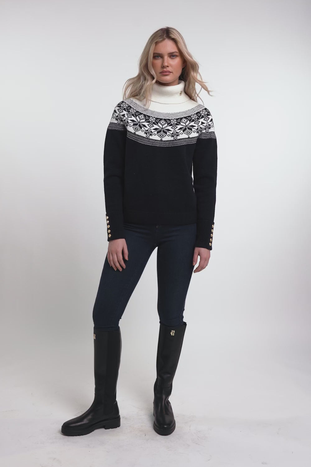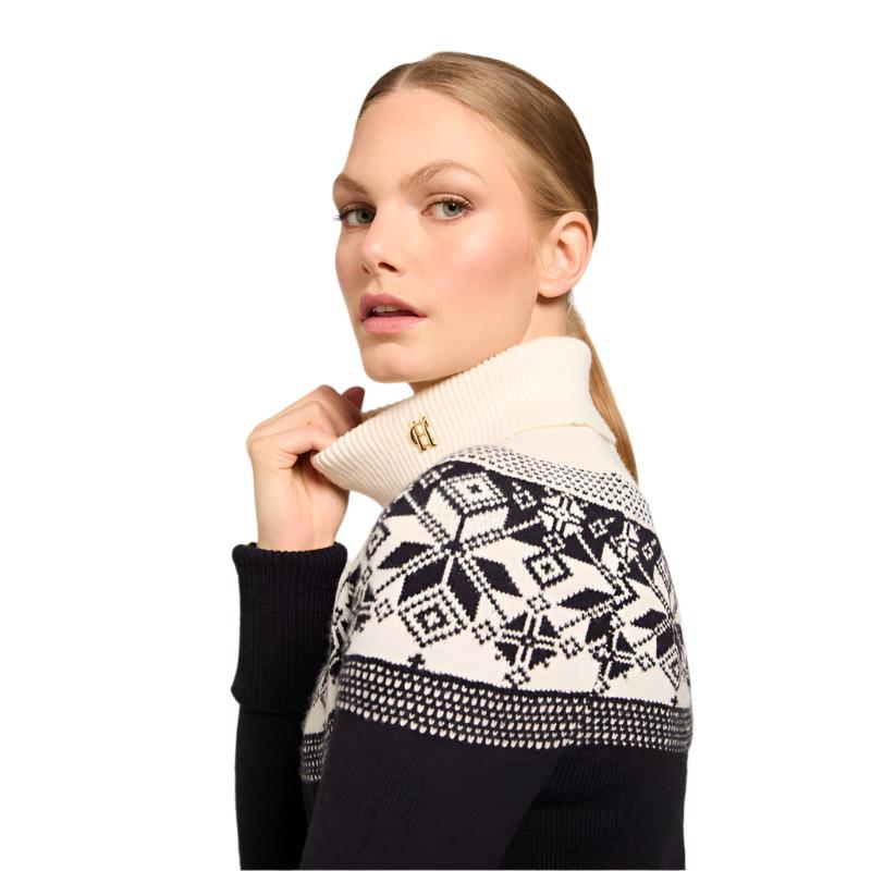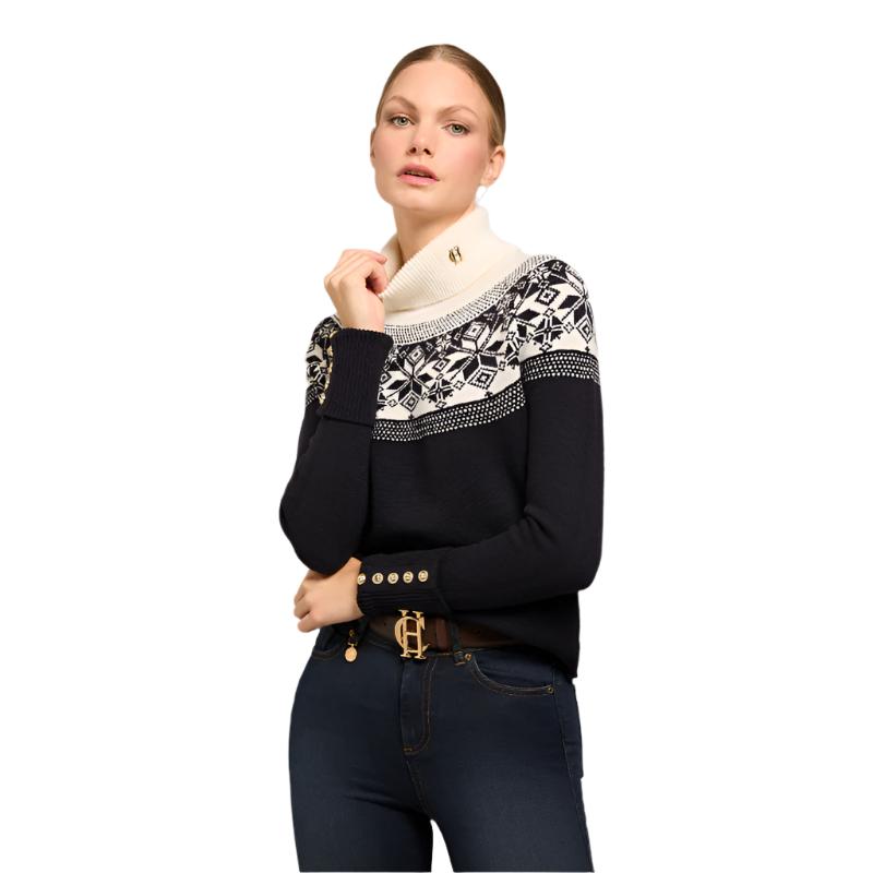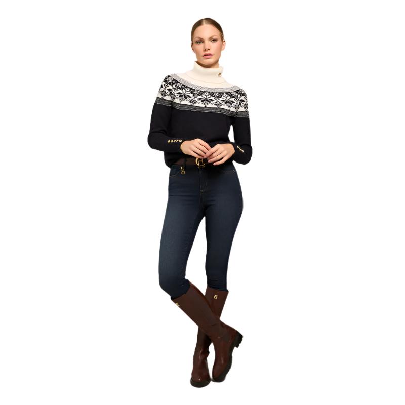 The Holland Cooper Beatrice Ladies Knit Roll Neck Jumper is a must-have addition to any wardrobe. Made from a soft wool blend, it offers both comfort and versatility. The timeless star fairisle pattern adds a touch of classic style, perfect for the colder seasons. Its relaxed fit and drop shoulder seam make it ideal for layering. Experience warmth and style all in one with this essential knit.