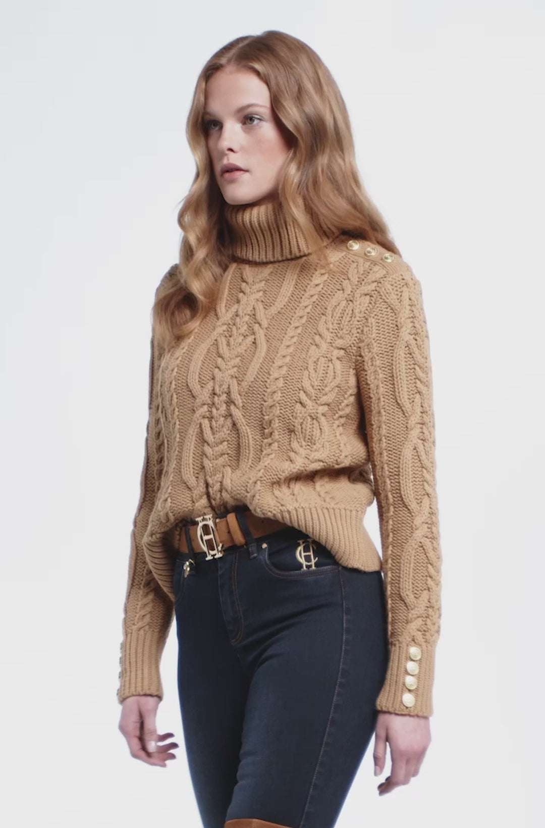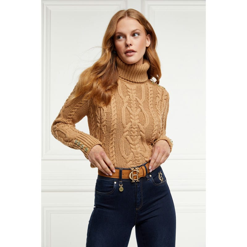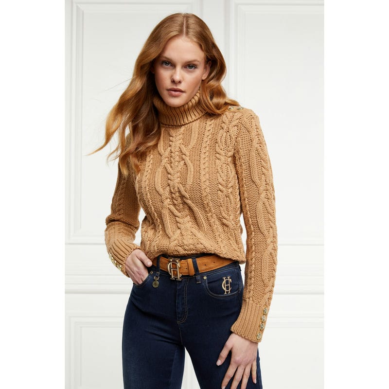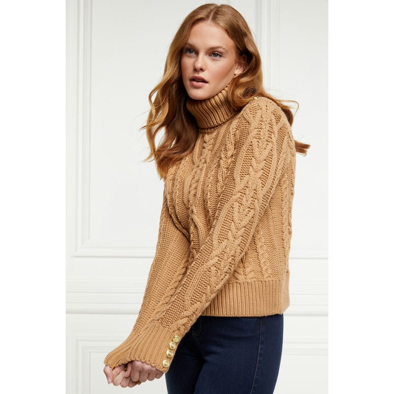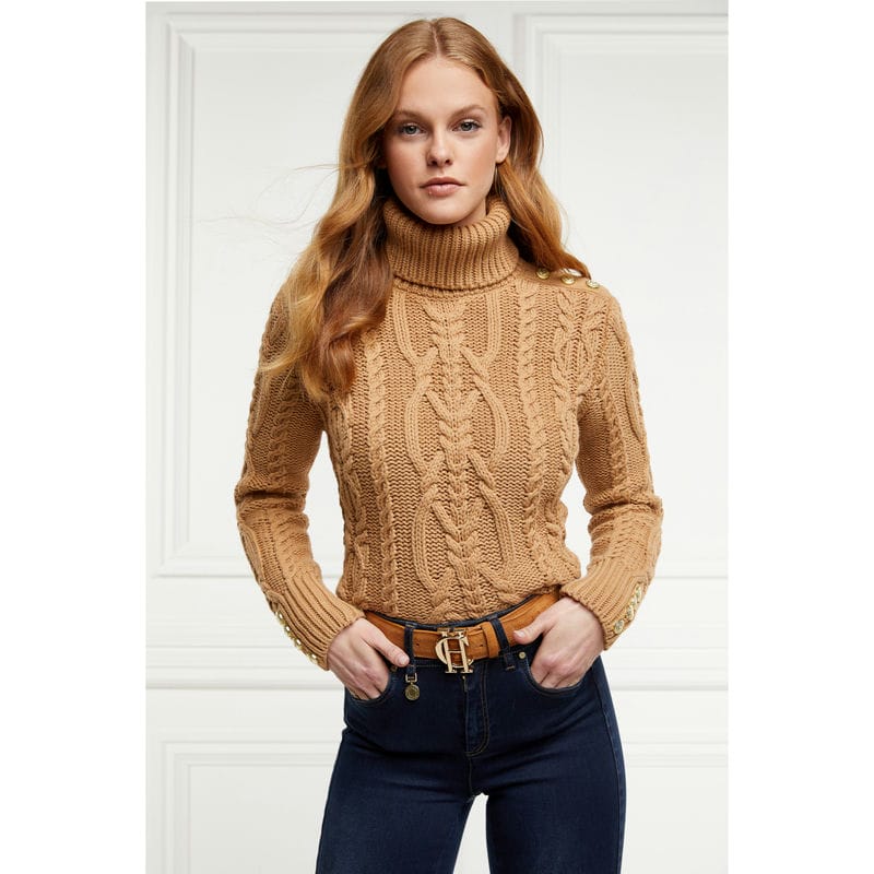 Holland Cooper Belgravia Cable Ladies Roll Neck Knit - Camel